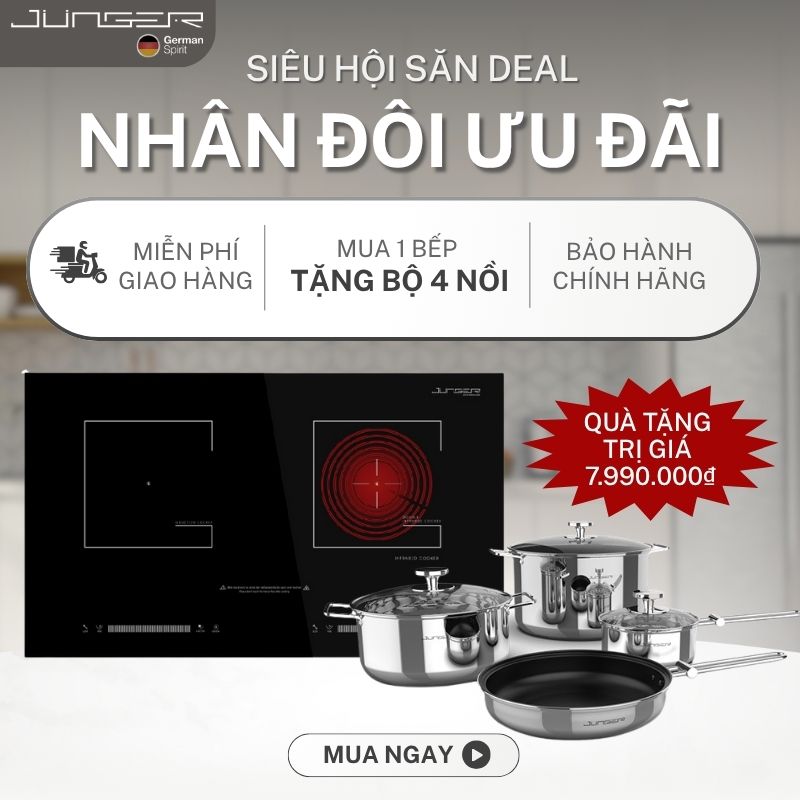 - Bếp điện từ hồng ngoại Junger SIS-66 hướng đến sự mạnh mẽ cả về kiểu dáng lẫn công năng. Không chỉ thu hút bởi vẻ đẹp bên ngoài, bếp từ hỗn hợp Junger SIS-66 chinh phục người dùng bằng hàng loạt tính năng thông minh vượt trội có tính an toàn cao.